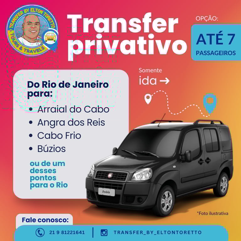 Transfer nos trechos: Rio, Aeroportos para Copacabana, Cabofrio, Búzios, Arraial, Angra: ida e volta