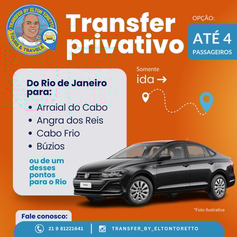 Transfer nos trechos: Rio, Aeroportos para Copacabana, Cabofrio, Búzios, Arraial, Angra: ida e volta